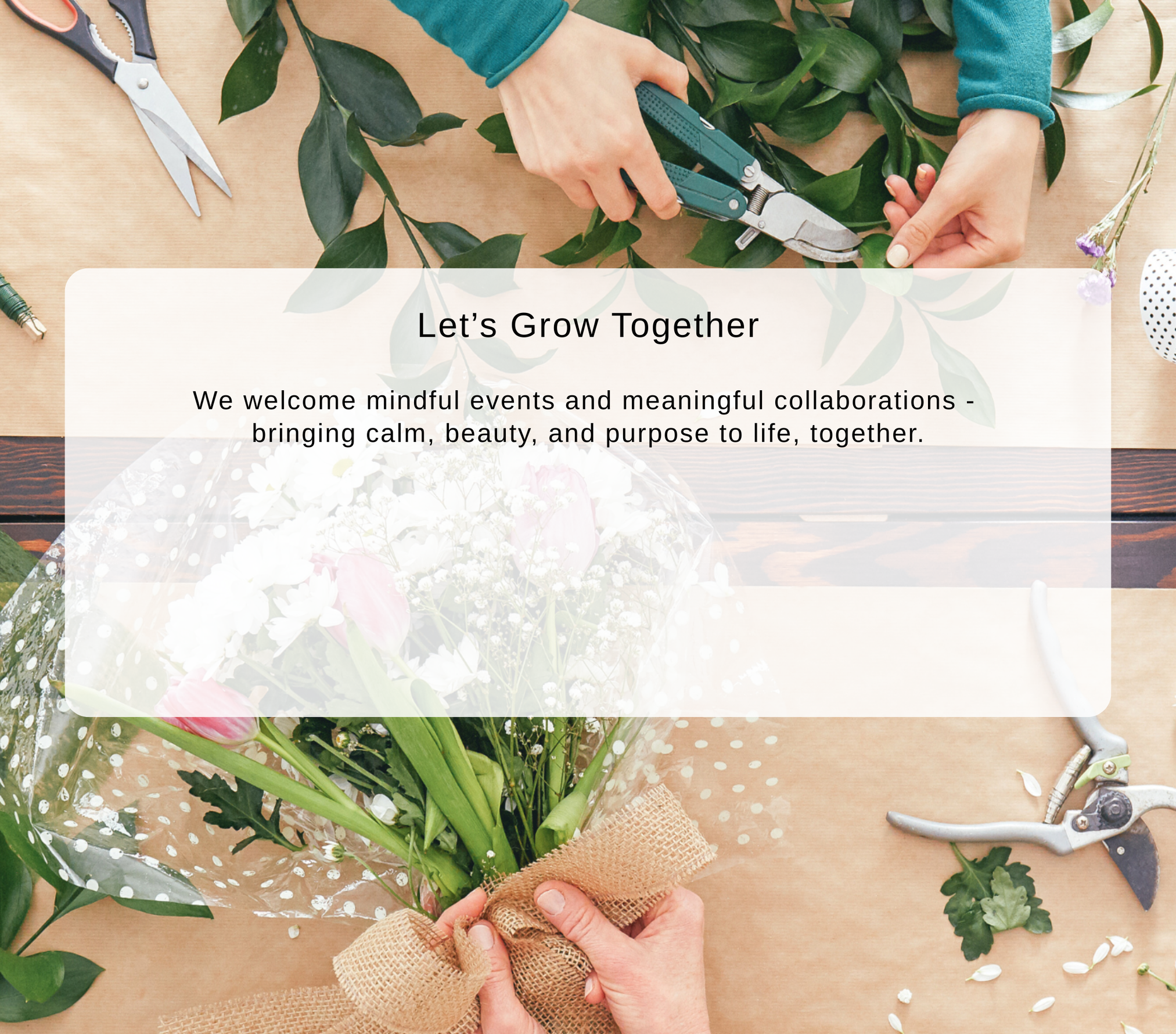 We craft mindful floral experiences that bring calm, beauty, and emotional resonance to everyday life. We welcome meaningful collaborations that align with our ethos - blending your vision with our gentle approach to floristry.