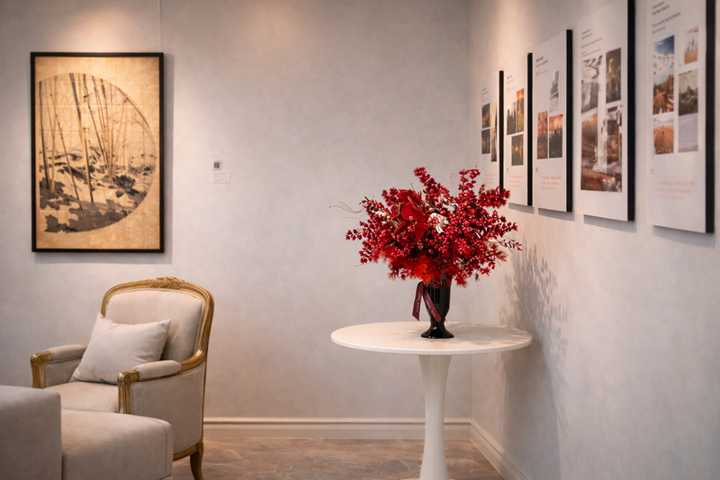 Thoughtfully styled botanical installations for art spaces - restrained, intentional, and in quiet dialogue with the surrounding works.