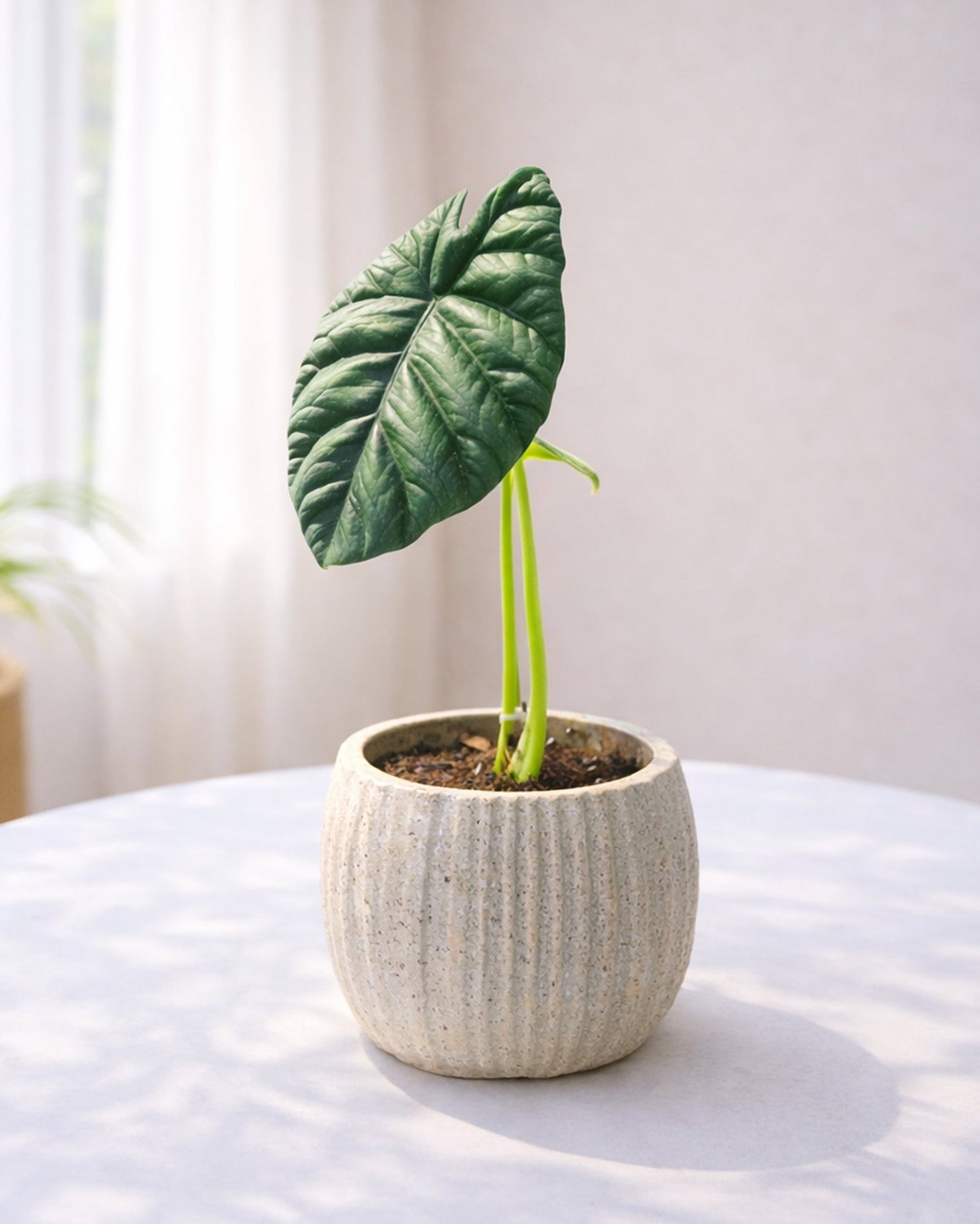 Fresh, tender leaves rise with gentle confidence, symbolising new beginnings and growth. This young Alocasia brings a light, hopeful energy that feels nurturing and alive.