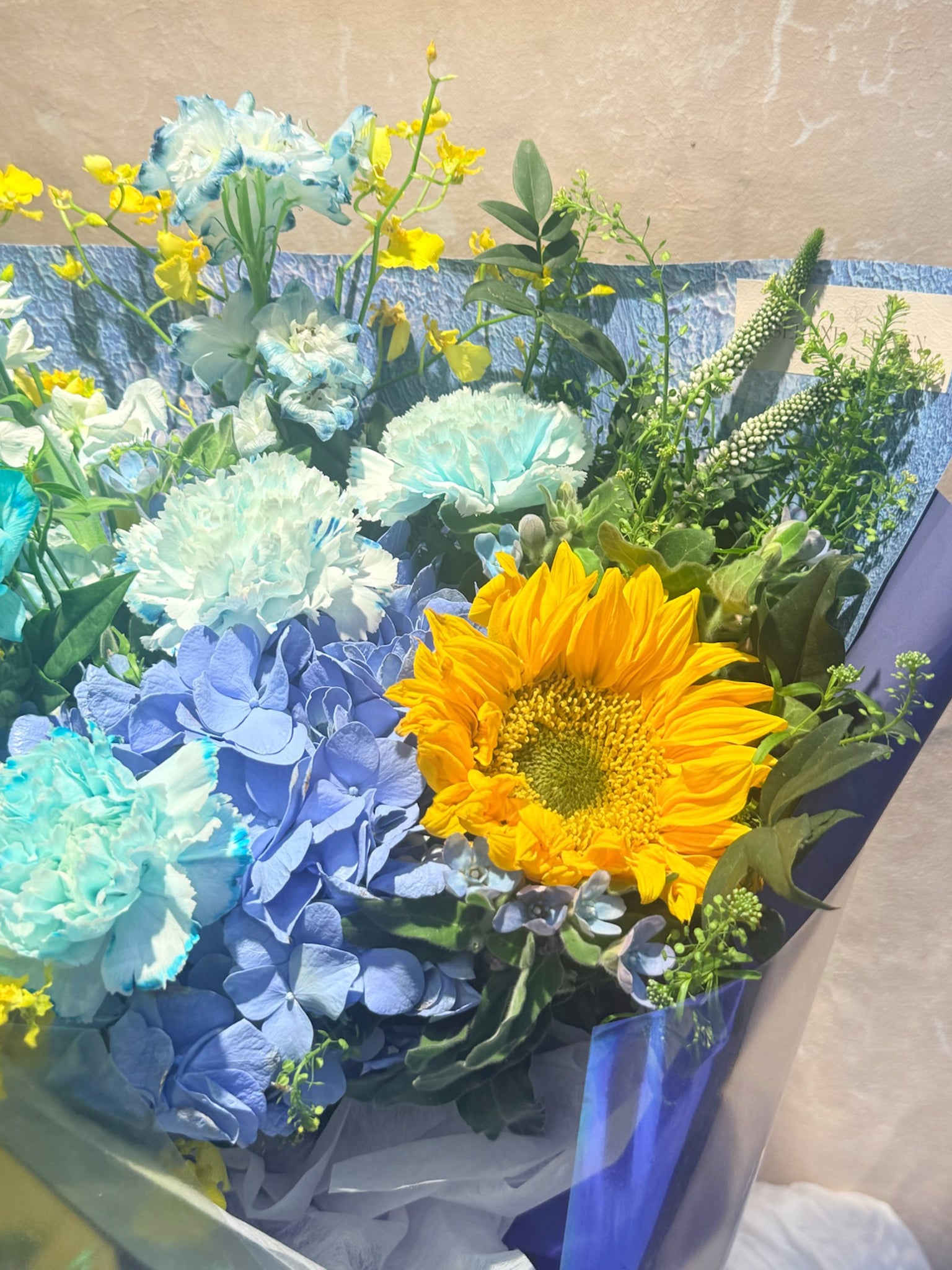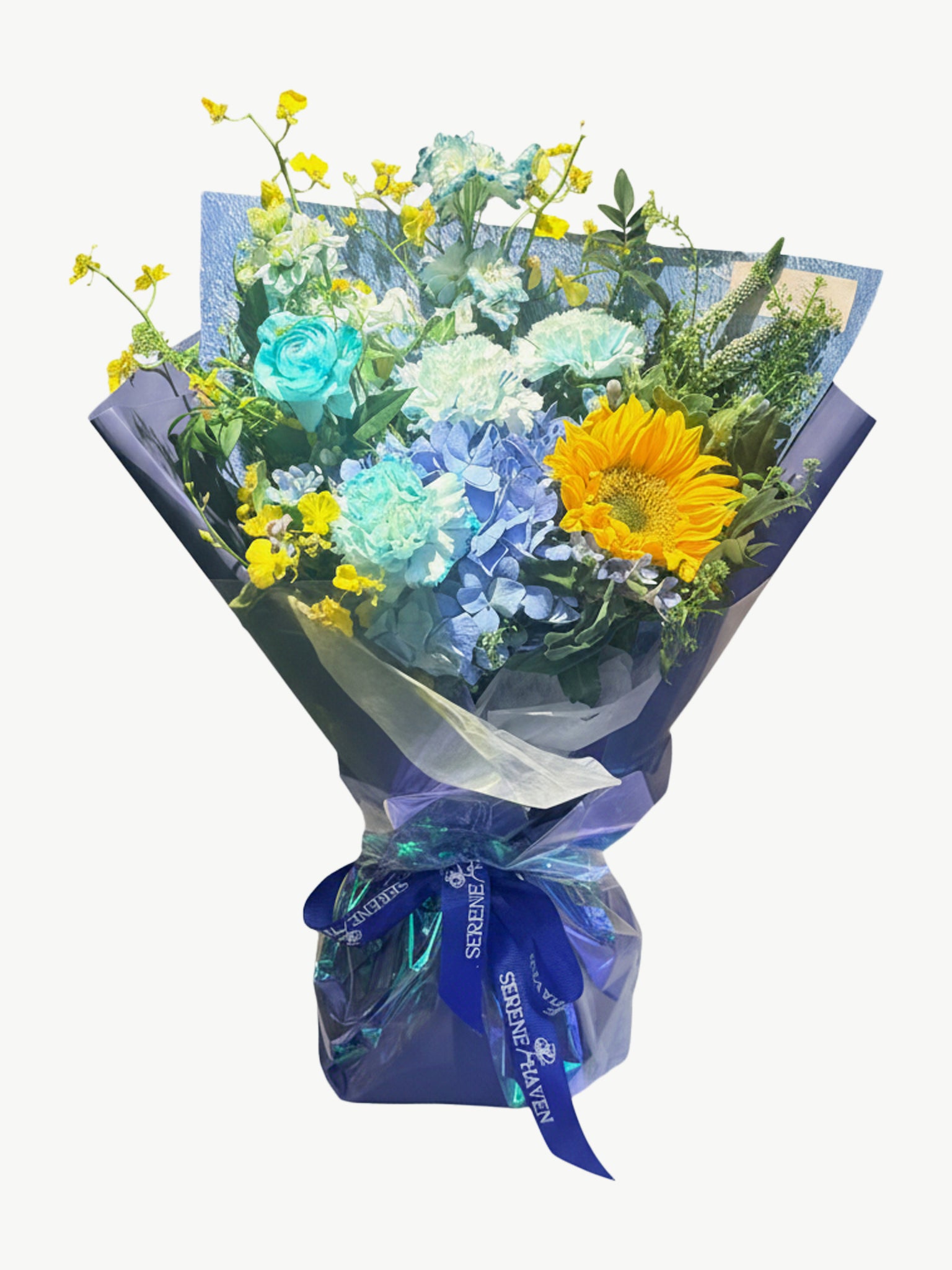 Bursting with cheerful contrast and energy, this vibrant bouquet brings together bright joy and calming serenity. A perfect gift for birthdays, celebrations, or simply to say "I'm thinking of you." Whether it’s for your bestie, your mum, or your other half, this bouquet delivers smiles in every bloom. Suitable for all occasions where warmth and care are needed.