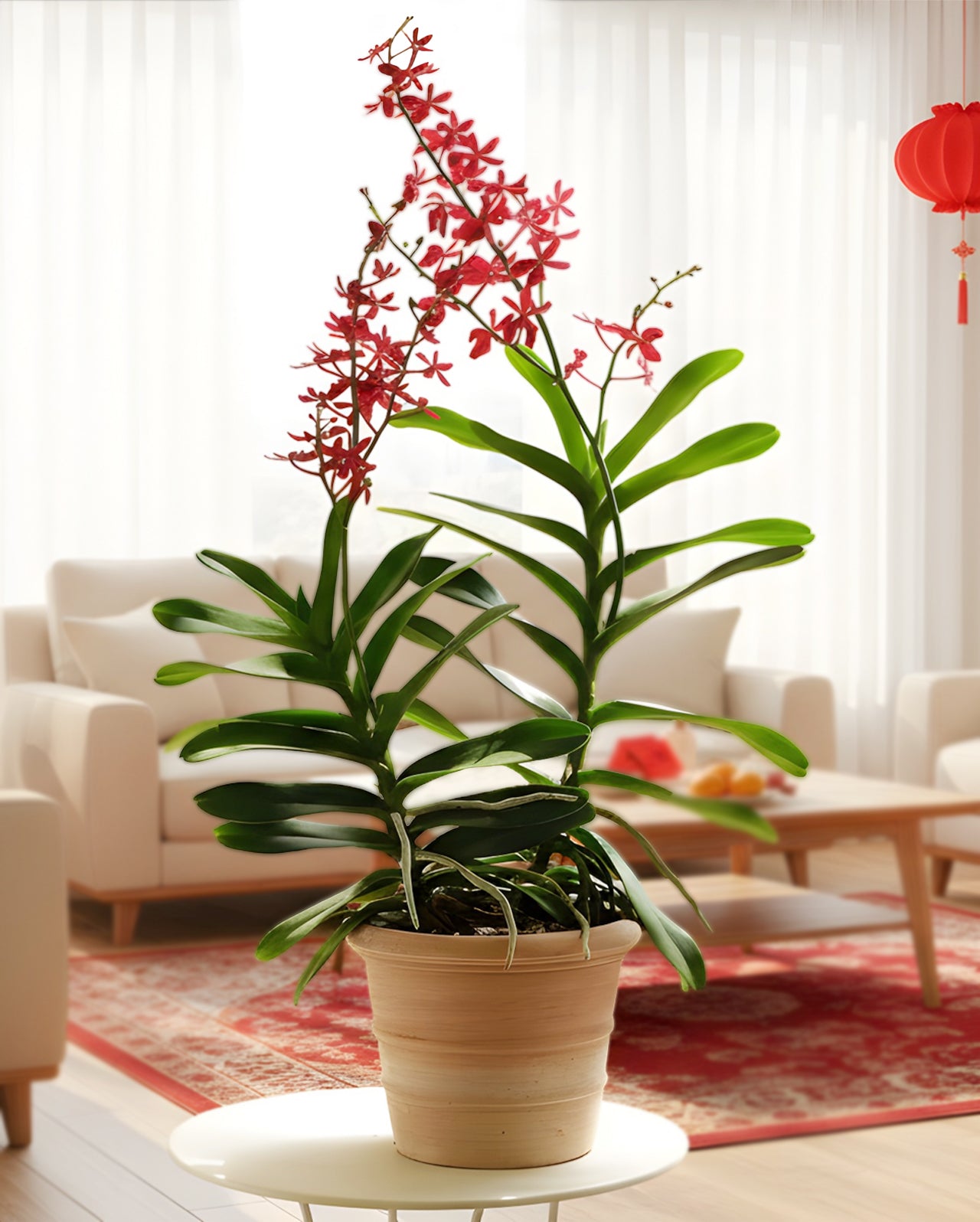 Bold and graceful, this orchid arrangement in festive red is a symbol of vitality and success. A sophisticated touch for the season, it’s perfect for Chinese New Year gatherings or gifting. Add a vibrant accent to your home décor while inviting good fortune all year round.