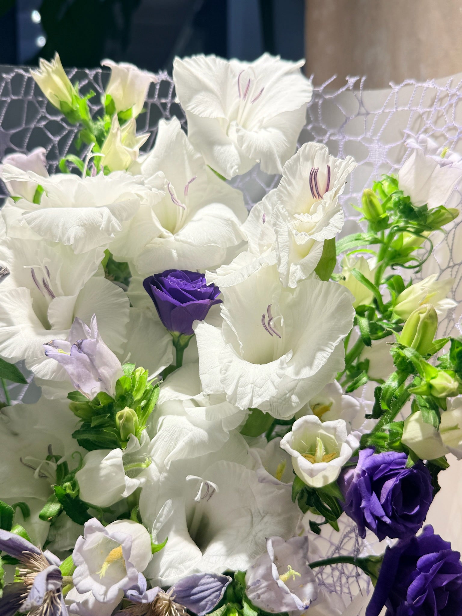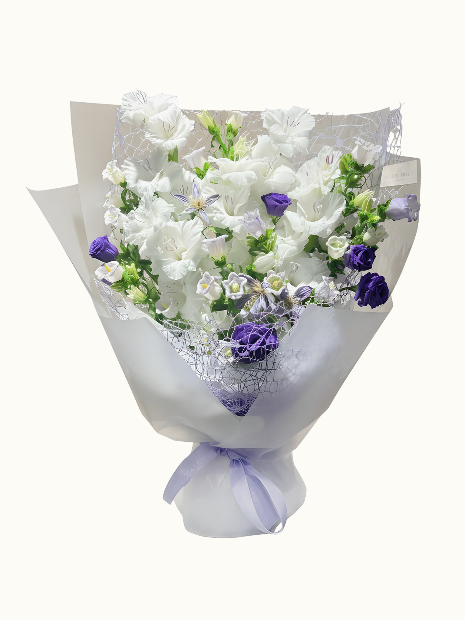 A delicate harmony of ivory whites and soft cornflower blues, this bouquet is a quiet sonnet in bloom - graceful, calm, and full of quiet charm. Perfect for moments of reflection, gentle celebrations, or simply to say “I’m thinking of you,” it whispers peace and affection with timeless elegance.