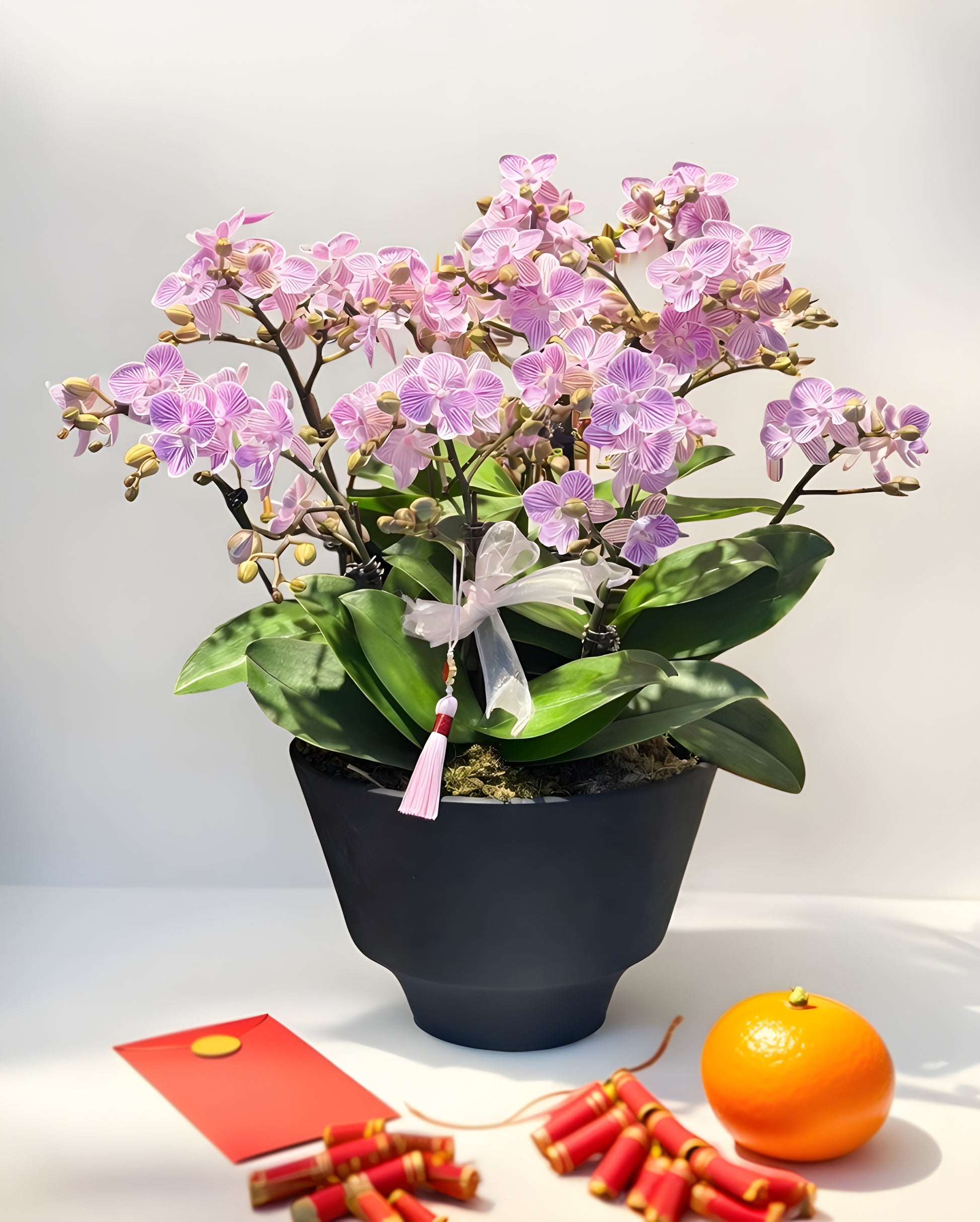 An elegant orchid centrepiece crafted for lasting impression. With abundant blooms and graceful detailing, this arrangement represents refined prosperity - a timeless gift for homes, celebrations, or corporate settings.