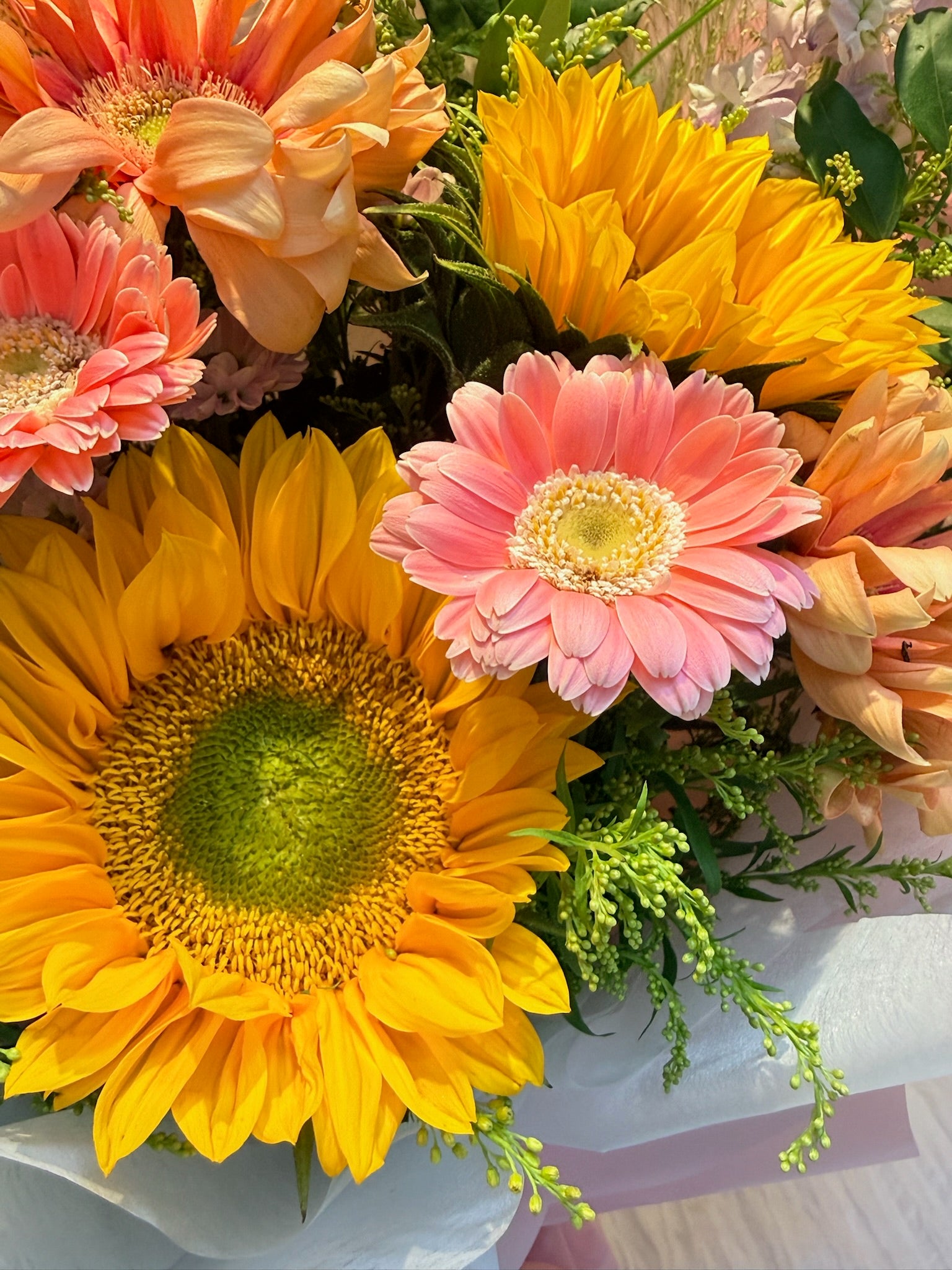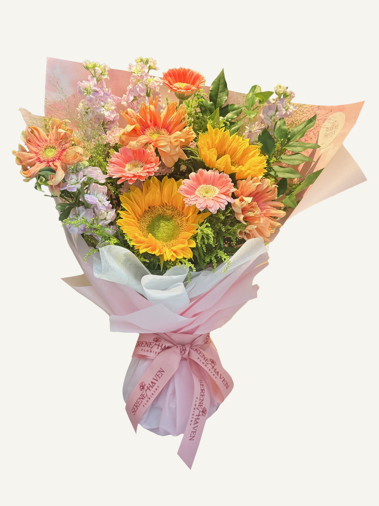 Radiant Rise is a vibrant celebration of hope, energy, and new beginnings - crafted especially for the graduate whose spirit shines bright. With its joyful tones and uplifting presence, this bouquet captures the warmth of ambition and the beauty of becoming. A heartfelt tribute to growth, it honours the journey ahead with light and optimism.