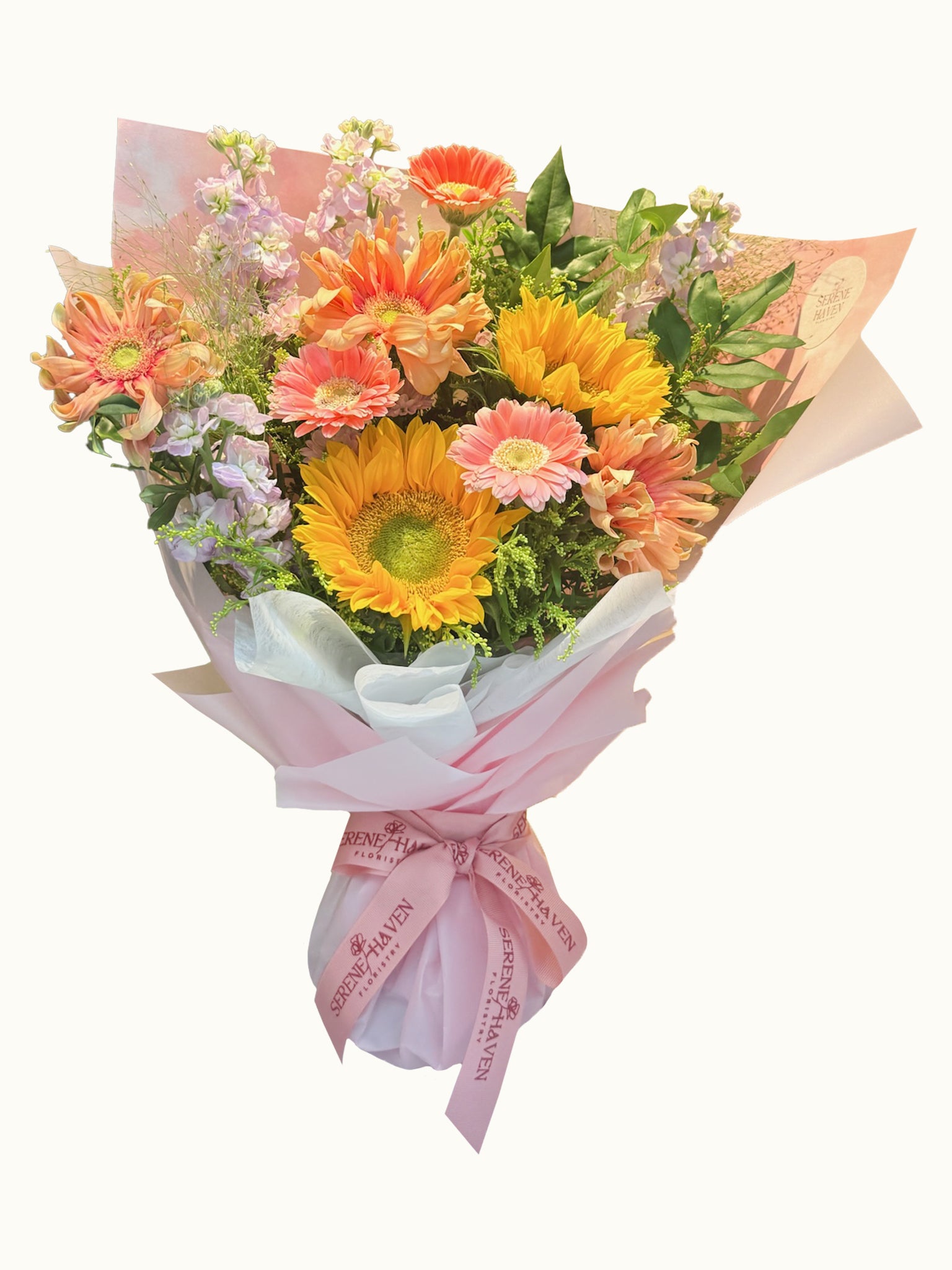 Radiant Rise is a vibrant celebration of hope, energy, and new beginnings - crafted especially for the graduate whose spirit shines bright. With its joyful tones and uplifting presence, this bouquet captures the warmth of ambition and the beauty of becoming.