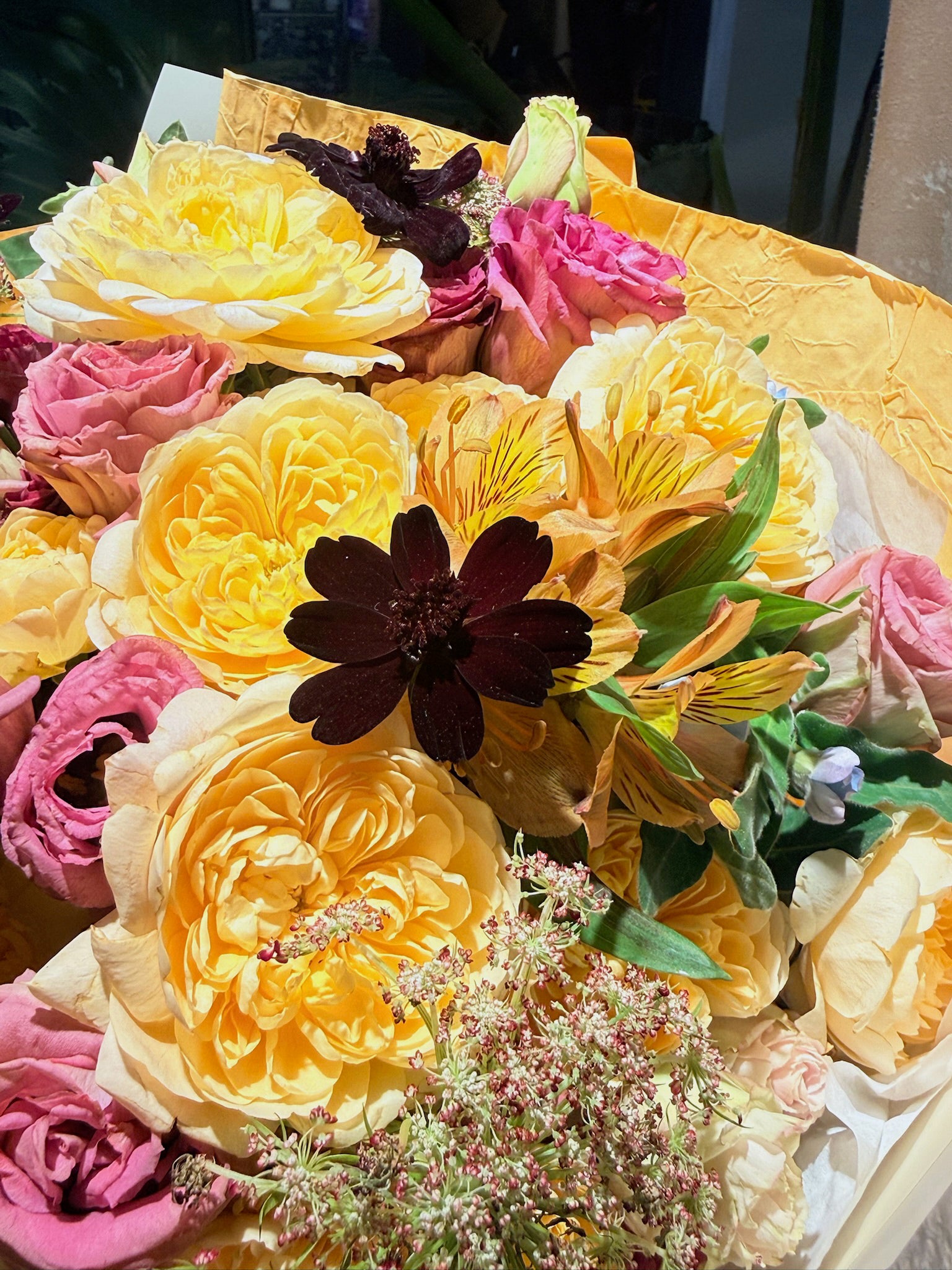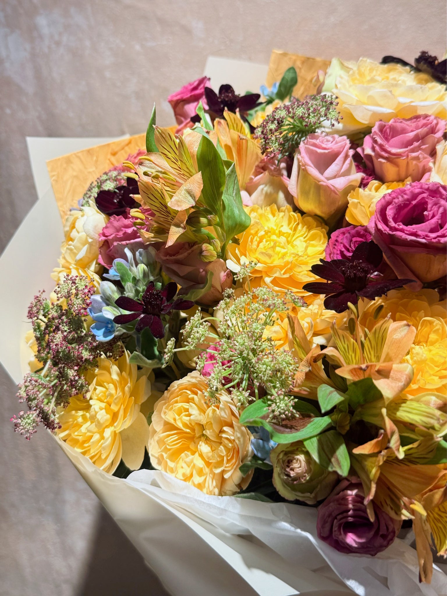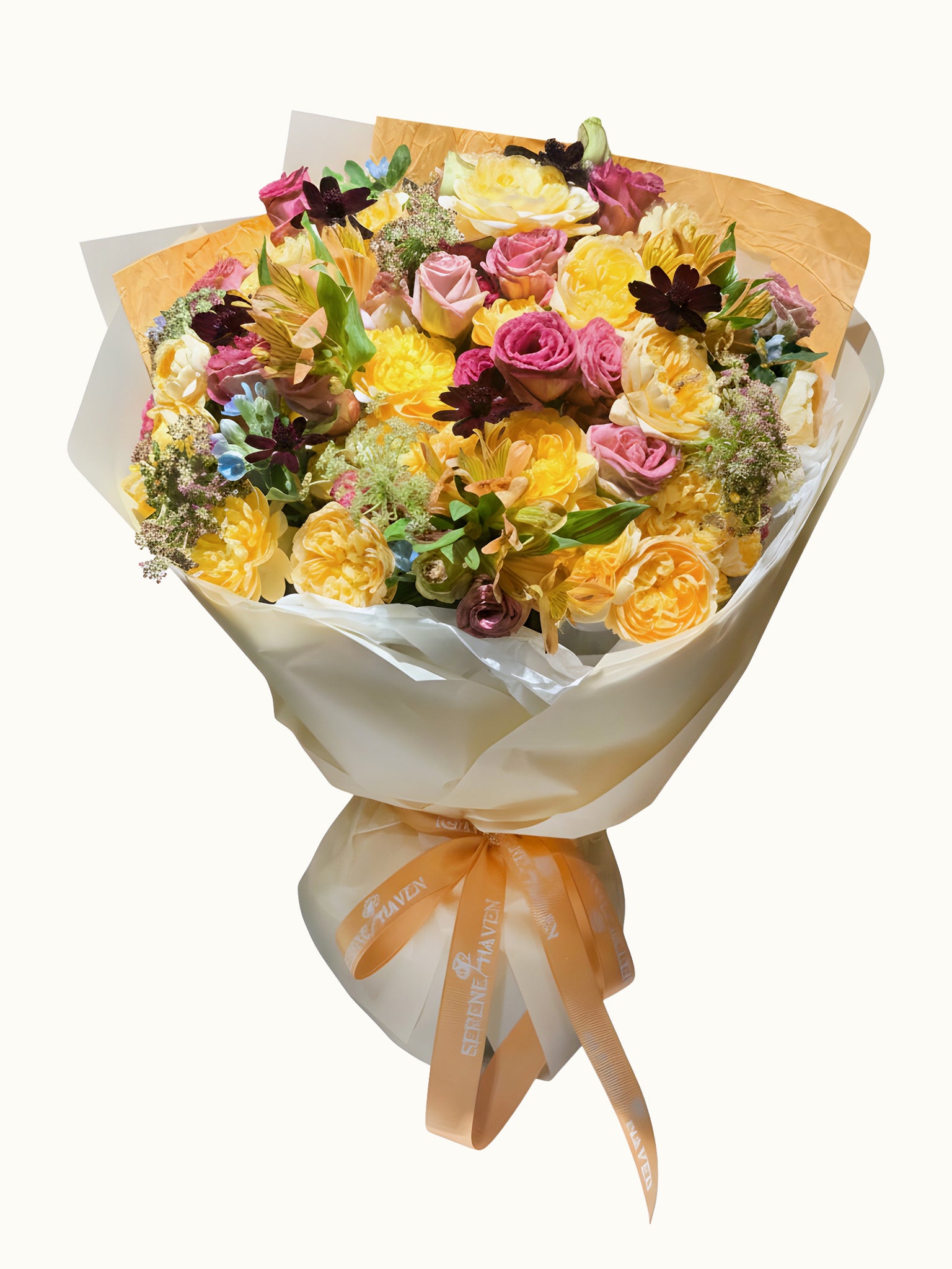 Brimming with vibrant, sunny colors, this joyful bouquet radiates happiness and warmth. A true celebration in floral form, it's the perfect choice for birthdays, graduations, or to surprise someone just because. Its cheerful tones breathe life into any room and instantly lift spirits. Whether you’re expressing gratitude, admiration, or affection, this bouquet makes a bold and heartfelt statement of positivity and delight.