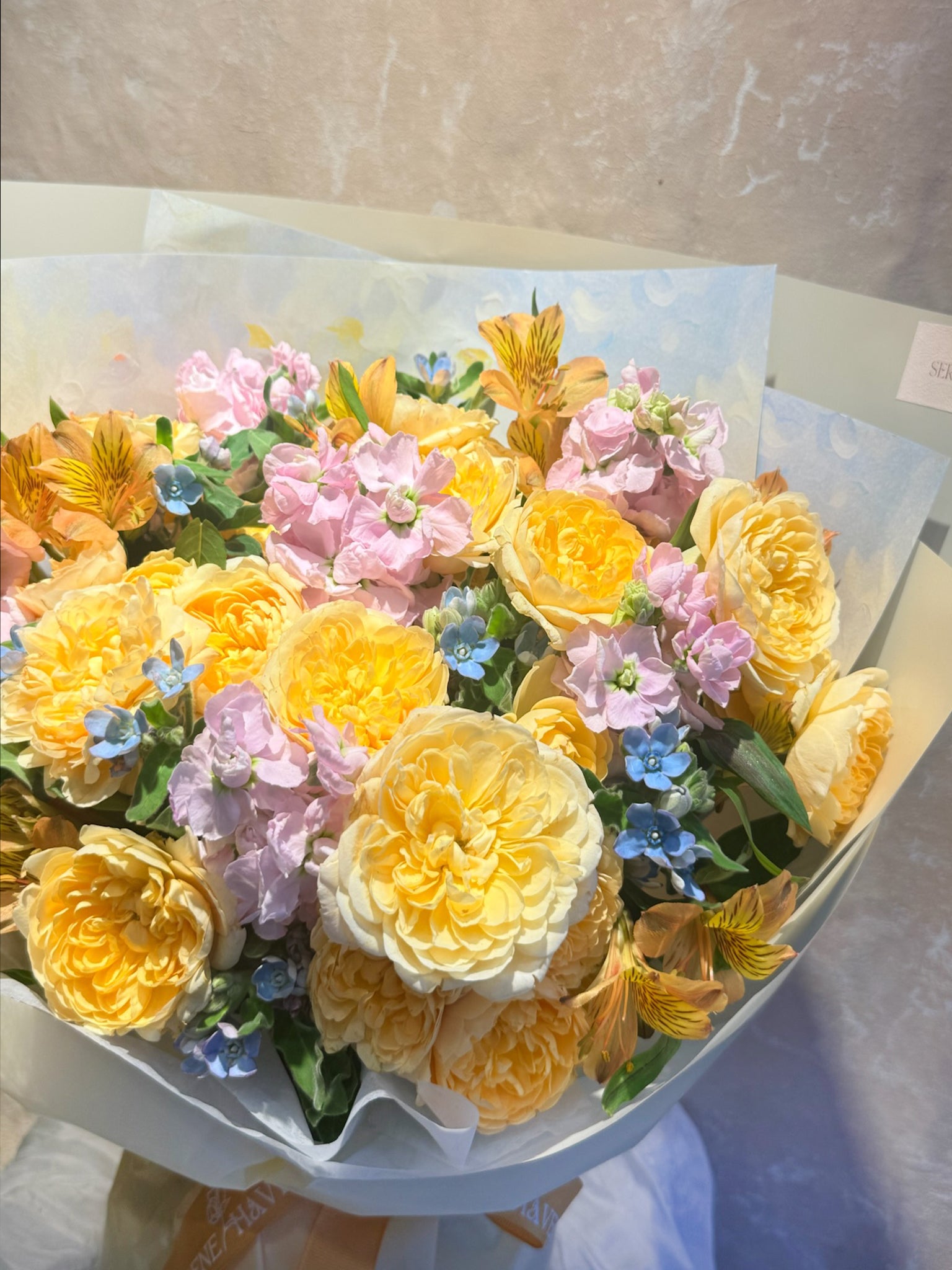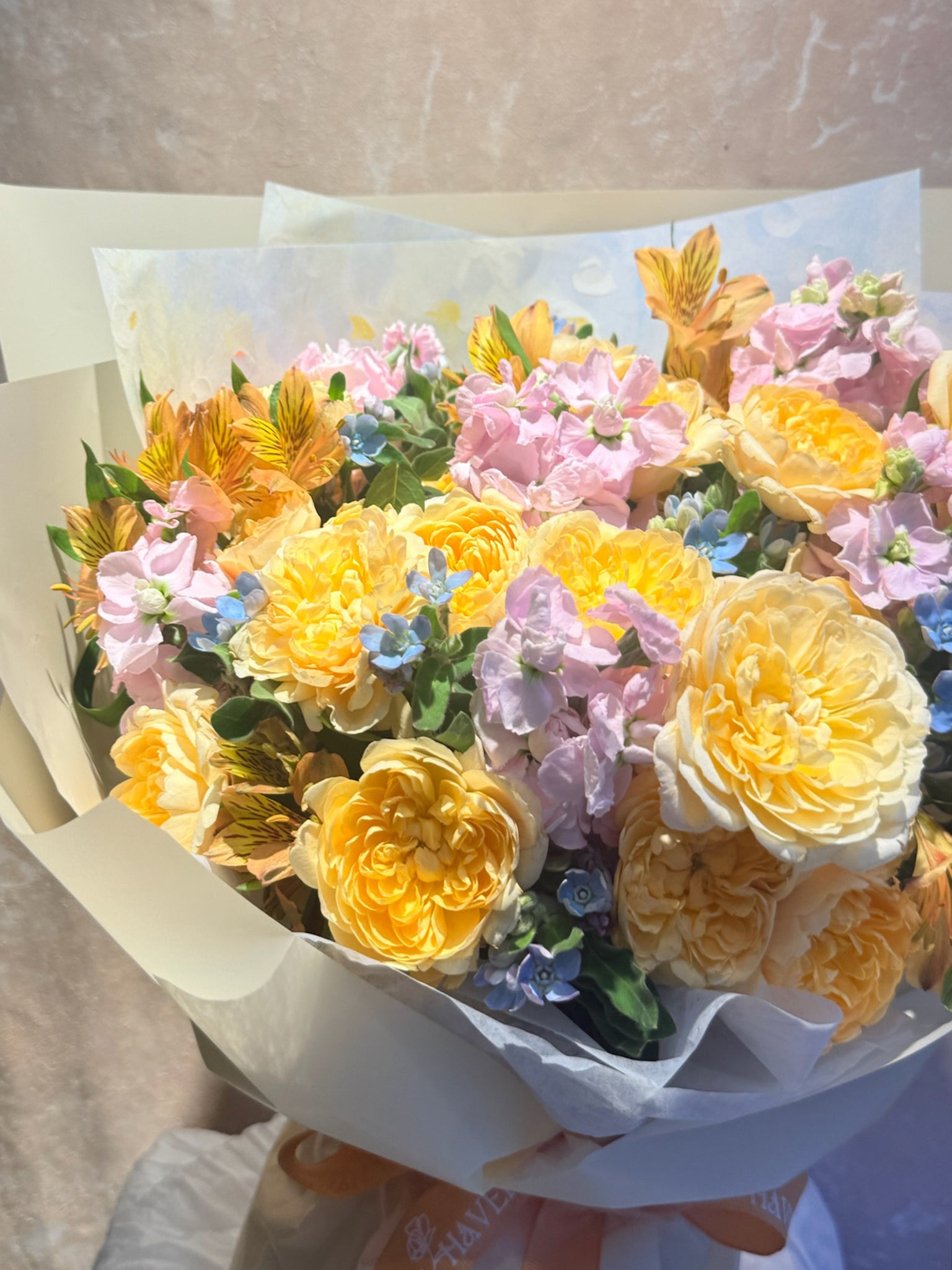 Cheerful and radiant, this bouquet bursts with warmth and delight. A perfect gift to brighten someone’s day - whether for birthdays, thank-yous, or celebrating friendship, it’s made to spread happiness and sunshine all around.