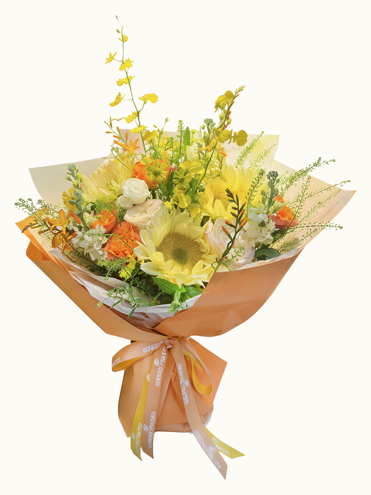 Vibrant, cheerful, and full of joy, this bouquet feels like a burst of sunshine. Its playful composition and sunny hues make it the perfect gift to brighten someone’s day.
